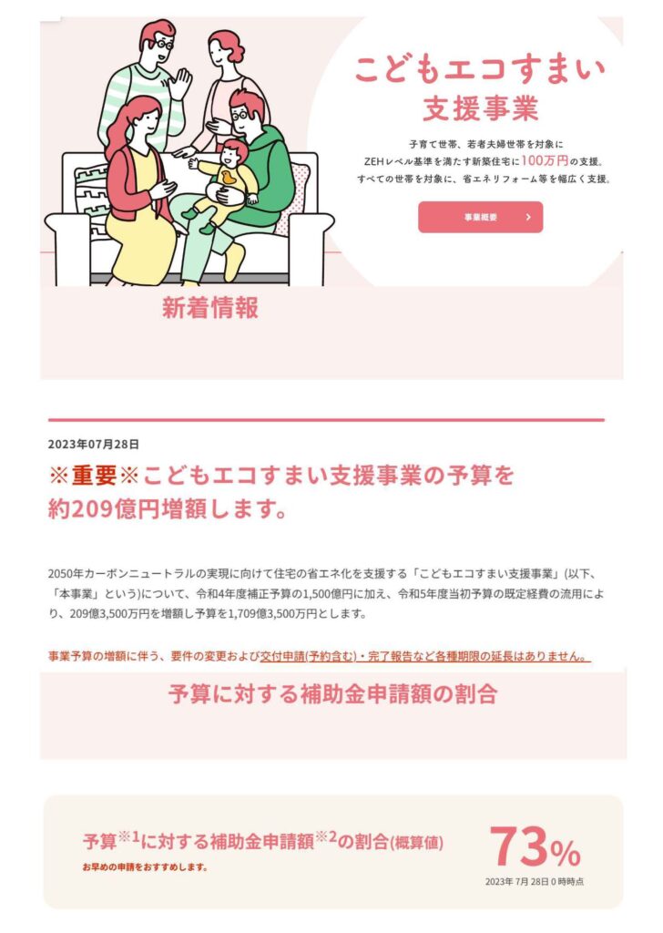 こどもエコ住まい支援事業の予算209億円の増加が決定!!