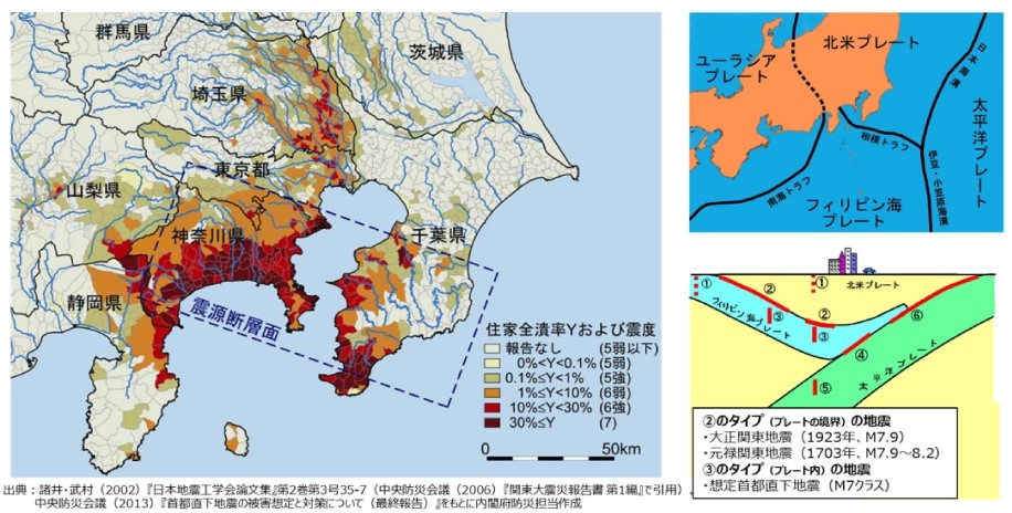 1855年の安政の大地震は相模トラフの少し北側、内陸側に位置していて首都直下型地震に類似していると考えられており相模トラフ地震には含めていない。