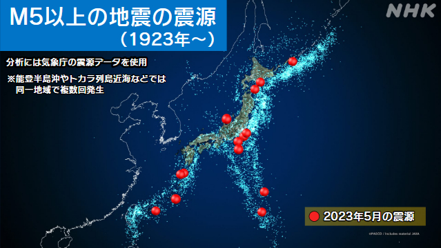 1900年以降、M5クラスの地震は120年で計9回しか起きていない。