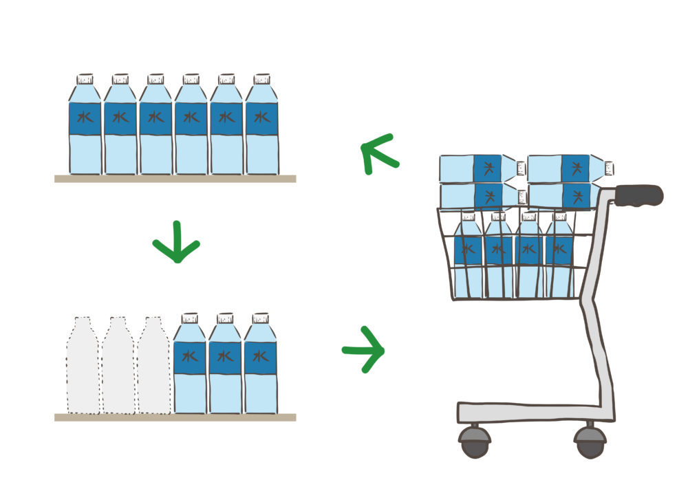 少し多めに食品や生活用品を買い置きして、古いものから使い、使った分を補充することで、常に備蓄ができている状態にします。