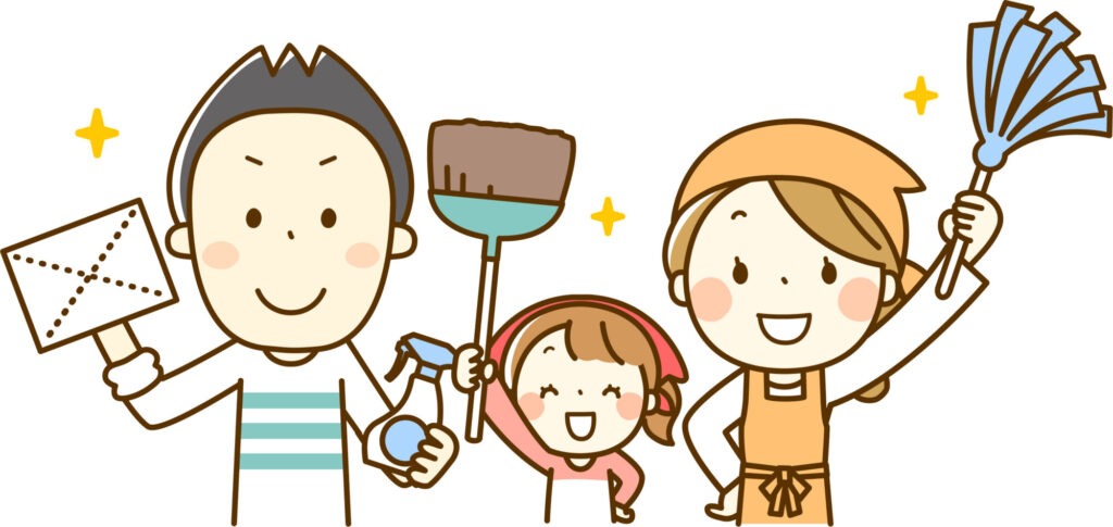 1日で終わらせる必要はなく、手分けして無理のない、楽しく大掃除するのがコツです(^^♪