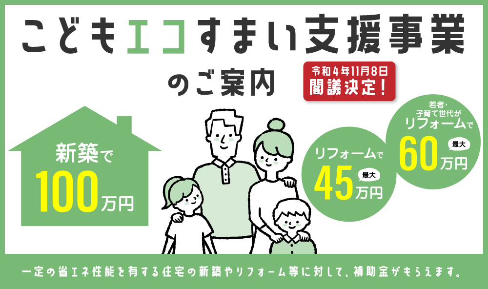新築で100万円・リフォームで最大60万円「こどもエコすまい支援事業」が創設!住宅の省エネ化への支援強化に関する予算案が閣議決定されました