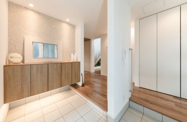家族専用と来客用に分けた2way玄関。収納もたっぷり用意しているので、いつでもキレイに整えることができるSIC。
