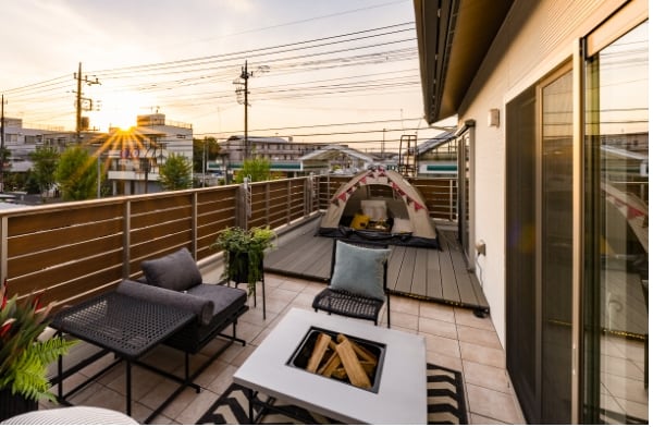 テクノストラクチャー工法により横幅と奥行きのある広さを実現。親子で一緒にテントからの星空観察がおすすめです。