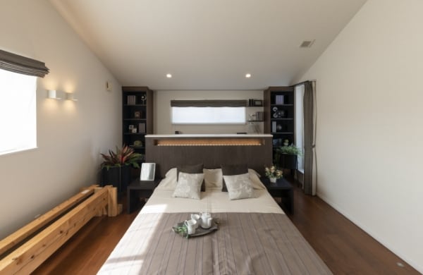 寝室は勾配天井にすると更に広く感じられます。その広さを是非ご確認ください。
