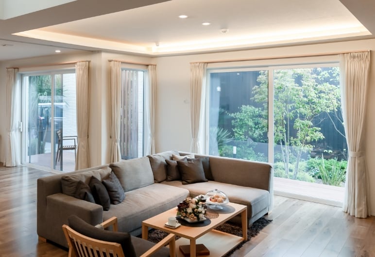 光が差し込む大きな窓!これだけ柱がなくても地震に強い耐震等級3(最高等級)を実現。