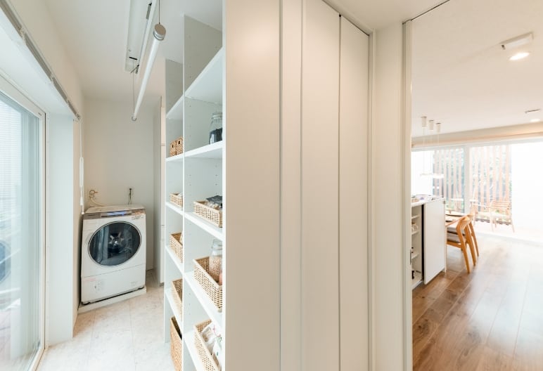 室内干しや外干しもできるよう考えたプラン。朝の忙しい時でも効率よく洗濯物を干して、お出かけできます。