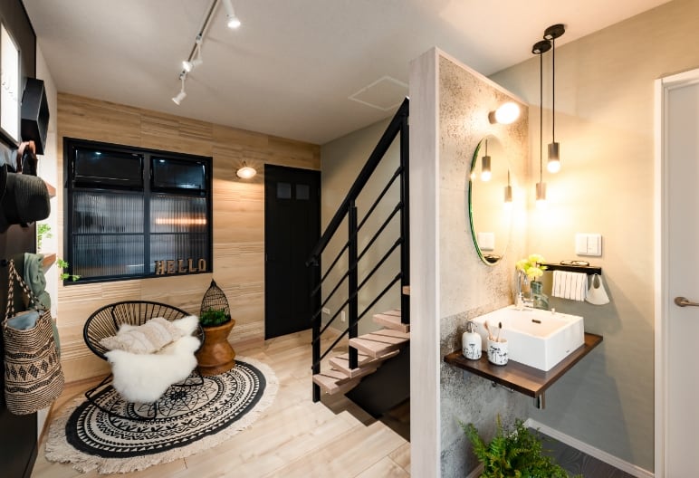 シックで都会的なモダンデザイン。やさしい雰囲気の自然素材などを組み合わせて落ち着きのあるテイストに。